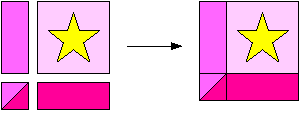 Now, wasn't that easy? This pattern is adjustable to any size. The width of the sashings is arbitrary. But the finished width of the sashings determines the finished size of the half-square triangle unit. If the sashing finishes to 3", then the half-square triangle unit finishes to 3". The length of the sashings is dependent on the size of the window pane. If the window pane is cut 5 1/2" then the length of the sashing is cut 5 1/2".